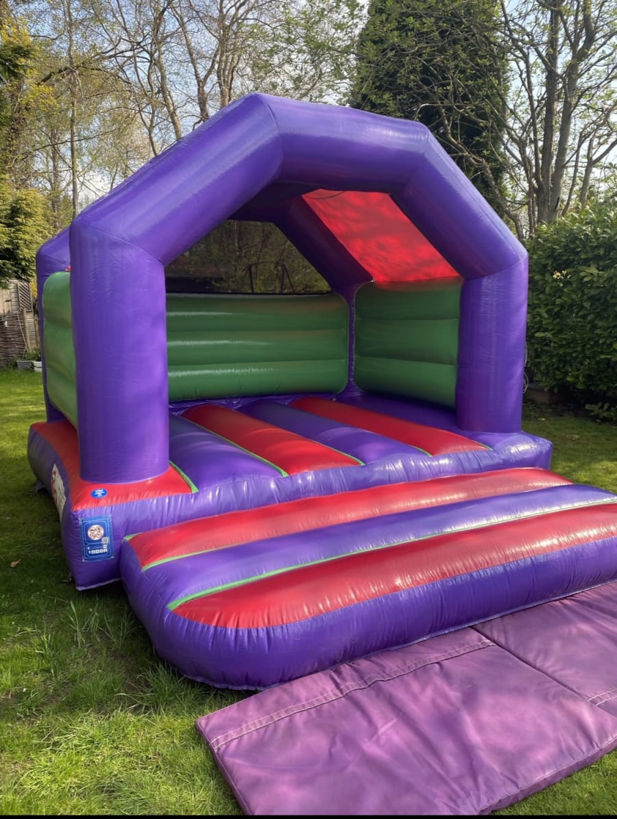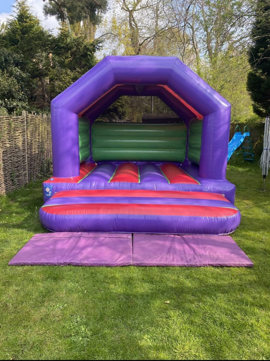 Sploj Limited is pleased to present our purple, red and green regular bouncy castle. This inflatable is available to hire for many events such as children's birthday parties, family parties, end of term/ school events, christenings, play dates or even to entertain bored kids! Our regular, purple, red and green bouncy castle is only suitable for children. We have listed the amount of children allowed on the next tab above. Unfortunately adults are not allowed on this inflatable unless they are assisting the little ones. This bouncy castle is available to hire on outside areas such as grass and inside areas such as village halls/ sports halls etc. Due to health and safety laws we are unable to hire to outside areas where the inflatable can not be pegged down (such as hard surfaces or fake grass). Sploj inflatables are based in Henley on Thames and hire to the surrounding areas such as Marlow, Sonning common, High Wycombe, Reading, Beaconsfield, Wallingford, Watlington, Bracknell, Woodley etc. Please let us know if you haven't seen your address on the list and we can check if we can deliver to you. We are a member of BIHA and all inflatables are PIPA tagged each year for safety. Sploj maintain a high standard with all inflatables, all units are up to the most recent health and safety specs.