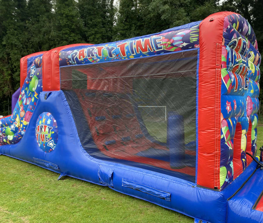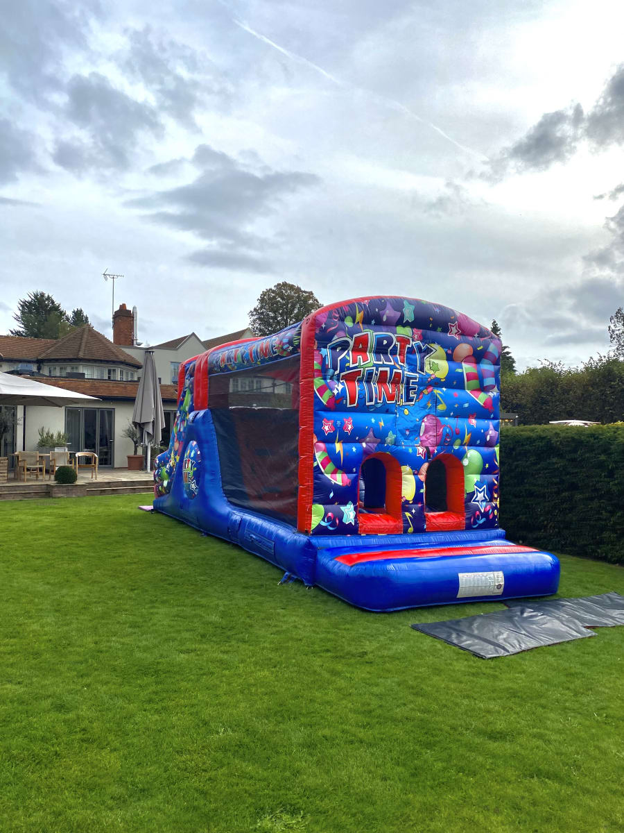 The inflatable Obstacle course is a favourite at Sploj. It is sometimes referred to as the party time fun run. This inflatable is suitable for children and adults of all ages! We recommend this fun run for all your events, such as children's parties, adult parties, family gatherings, get togethers with friends/play dates or just to entertain the kids. It is long and narrow and fits in most gardens. Sploj can hire this indoors to village halls/sports halls or outside in gardens and at venues. This inflatable can not be hired on hard surfaces where it can not be pegged e.g concrete or fake grass. Sploj hire this inflatable obstacle course out to many towns in and around Henley on Thames, such as Reading, High Wycombe, Beaconsfield, Sonning Common, Twyford, Marlow, Wallingford, Pangbourne, Bracknell etc. If you do not see your address please get in touch and we can see if we can deliver. Sploj are members of BIHA and this fun run is PIPA tested as stated on UK Laws. We take great pride in offering all our bouncy castles at a high standard, hence this inflatable is cleaned and sanitised regularly. Please get in touch if we can be of any further assistance on 07887353814.